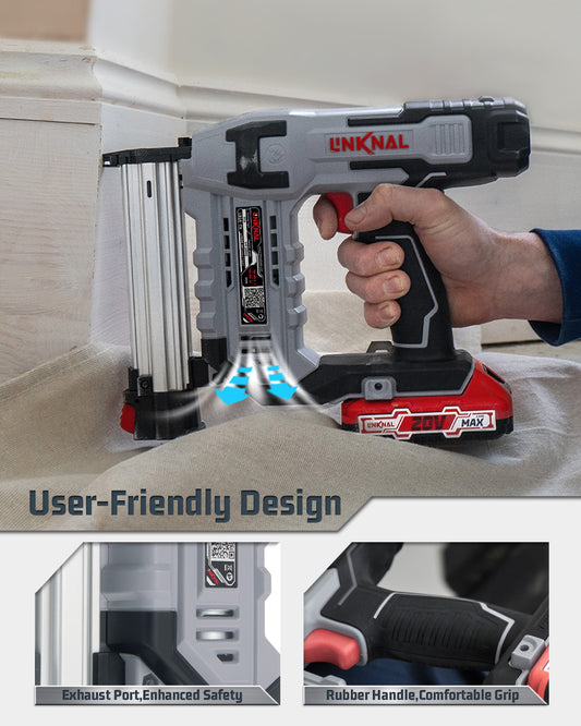Electric Nail Gun, LINKNAL Cordless Brad Nailer Battery Powered,18 Gauge, 2×20V MAX Li-ion Batteries, Charger and 1000 Nails Included (L820-BN)